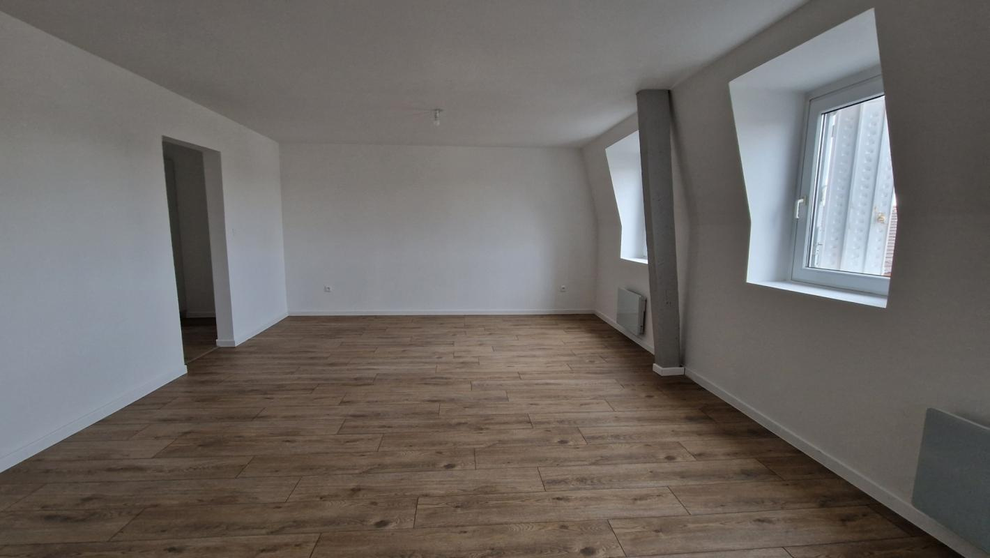 Au 45 Rue des Oiseaux, Mulhouse, Au 2ème et 3ème étage d'un immeuble entièrement rénové, Magnifique T4 remis à neuf. Celui-ci se compose des pièces suivantes : - un grand séjour - une cuisine équipée - trois chambres à l'étage - une salle d'eau - un WC séparé Chauffage électrique (radiateurs neufs et économes), l'immeuble a été en outre été isolé thermiquement. Loyer : 700 euros Charges : 50 euros (eau, électricité des communs, ordures ménagères) Honoraires : 450 euros TTC (dont 123 € pour la réalisation de l'état des lieux.) Disponible début avril. Les risques auxquels s'expose ce bien sont consultables sur georisques.gouv.fr